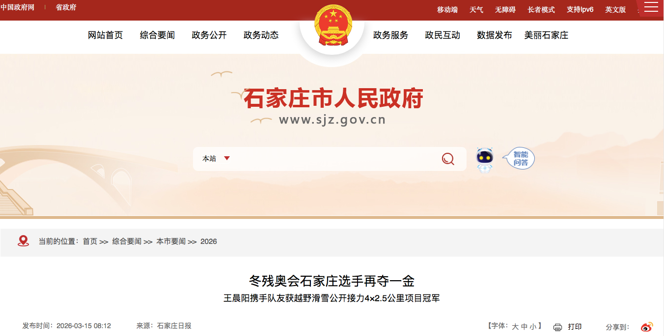 当地时刻3月14日,介怀大利泰塞罗举行的米兰-科尔蒂纳冬残奥会越野滑雪公开竭力4×2.5公里比赛中,石家庄选手王晨阳与队友沿路夺得冠军。这亦然石家庄选手在本次冬残奥会中夺得的第二枚金牌。