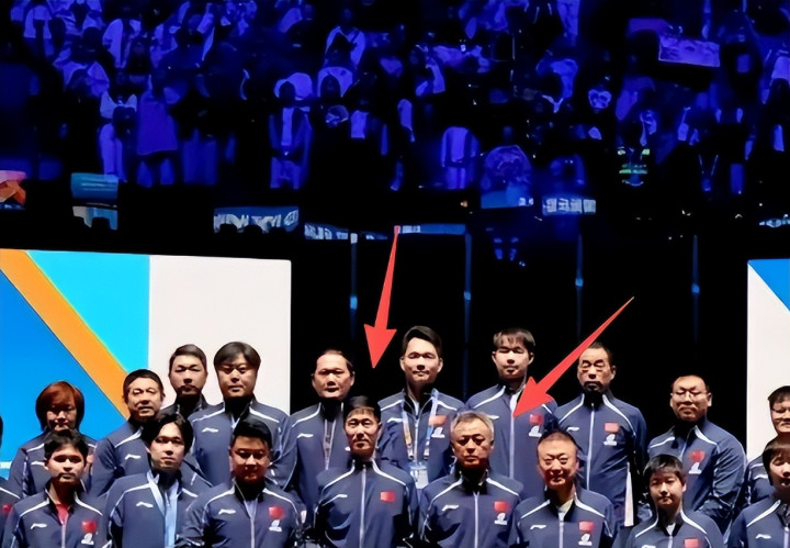 赛后国乒教悔组与诸位剖释员照例进行大合影眷恋,而球迷们最关心的也曾诸位主力选手的站位。
